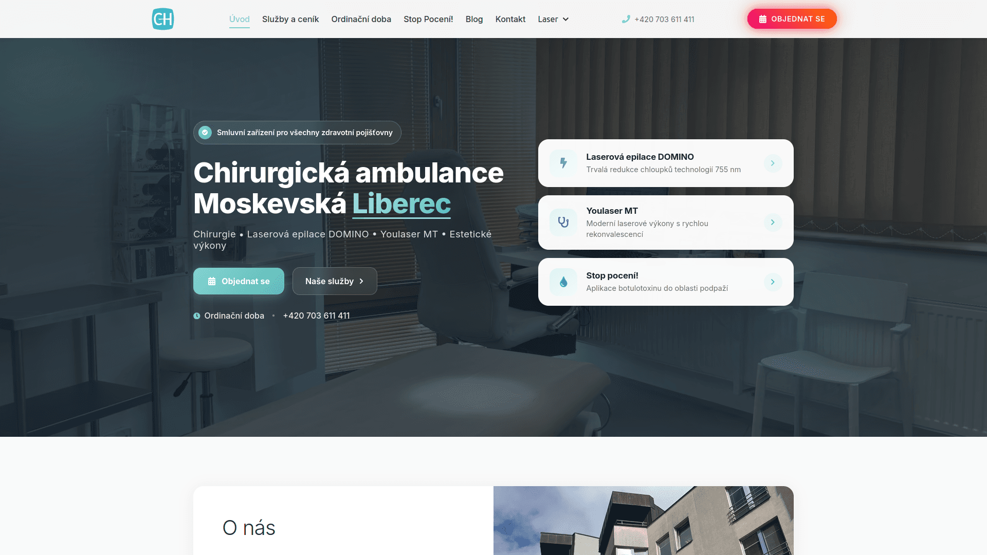 Web pro chirurgickou ambulanci v Liberci — online rezervace, dynamická správa ordinačních hodin a blog.